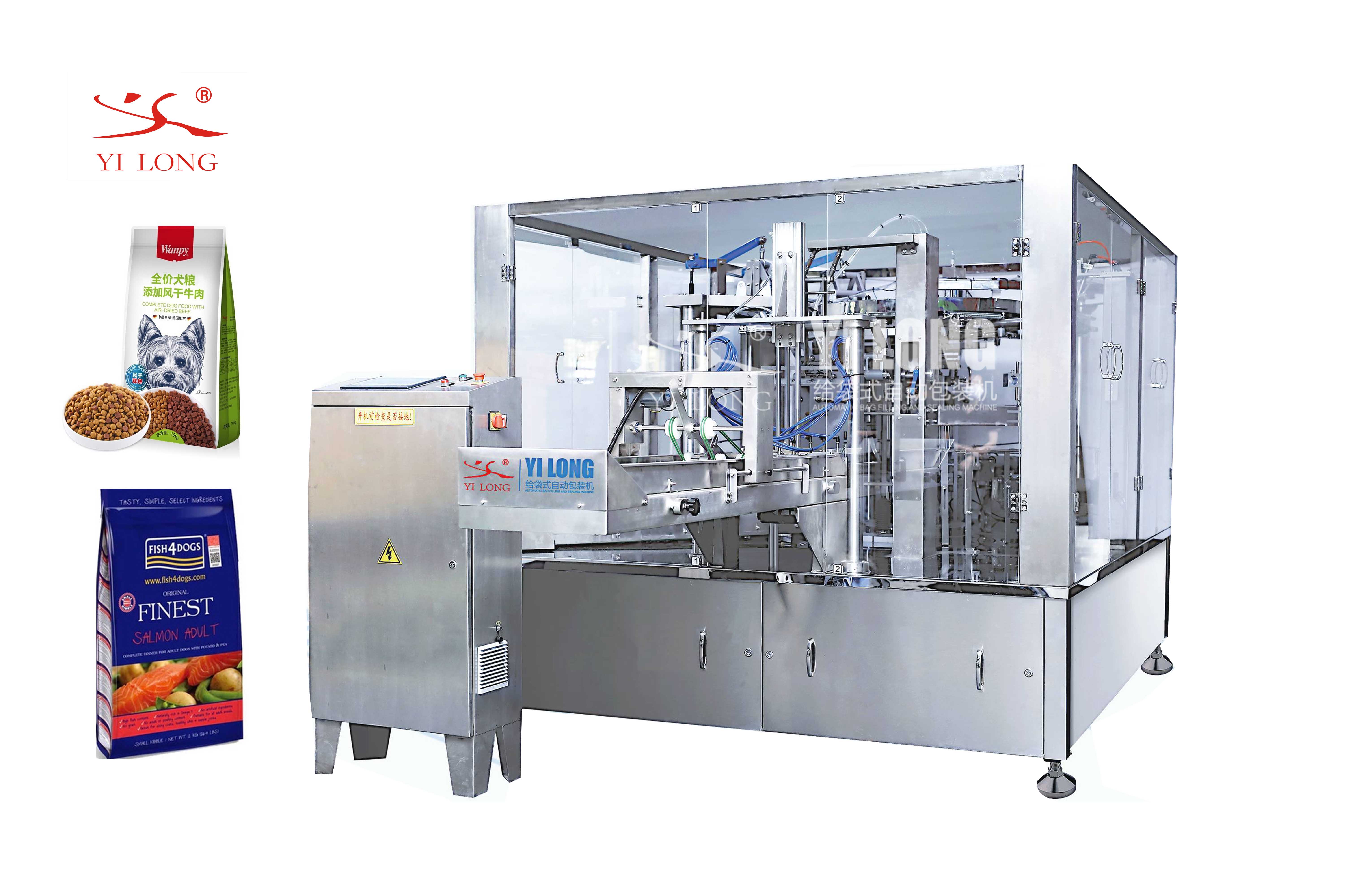 17c吃瓜的YL-8T大包装给袋式自动17吃瓜 ,可在同一台设备上实现一键调节袋宽的功能,完成大小袋、不同宠物干粮的包装任务,且包装速度达10-20袋/分钟。相较于半自动和传统全自动包装设备来讲,不仅节省了大量的人力成本而且大幅增加了产能,提高成品质量的一致性和稳定性。