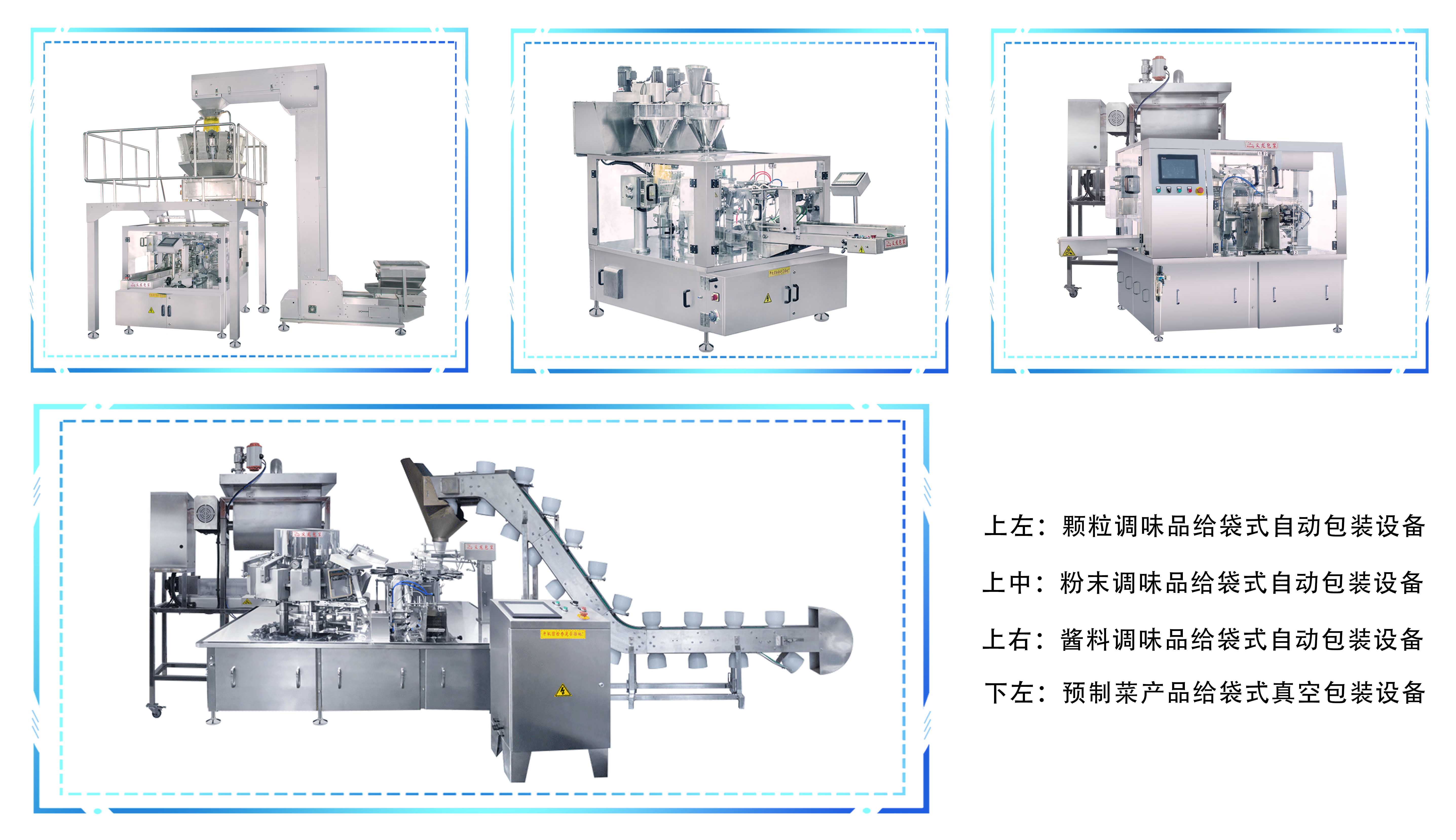 公司针对各类粉剂、颗粒、酱体调味品研发的给袋式自动包装设备,解决了客户在包装过程中的粉尘反扑、拉丝滴料等痛点,大大节省了物料与人工成本。更是提前预判市场情况,提前推出预制菜给袋式真空17吃瓜 ,针对即食、即热、即烹、即配类预制菜制定不同的自动包装解决方案,极大的促进了预制菜产业的发展。
