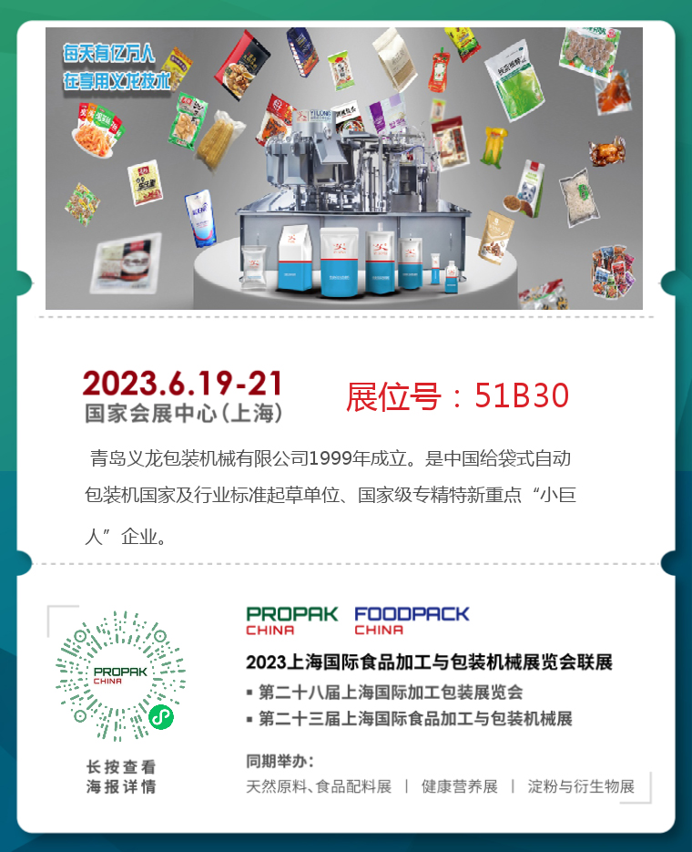 6月19日-21日,PROPAK CHINA 2023上海国际食品加工与17吃瓜 械展览会将在上海国家会展中心拉开帷幕。作为国内领先的给袋式自动17吃瓜 及智能包装一体化方案解决商,青岛17c吃瓜将携自动卷膜制袋给袋式17吃瓜 、(6-8)XZ间歇回转式吸嘴袋灌装旋盖机、给袋式高速真空17吃瓜 、开箱装箱封箱一体机等智能自动包装新品亮相展会(展位号:51B30)。