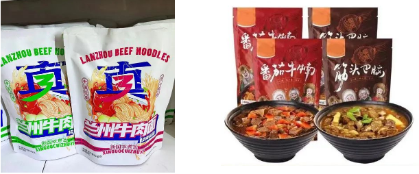多小包入大包装预制菜代表产品:过桥米线、牛肉拉面、火锅底料、酸菜鱼等