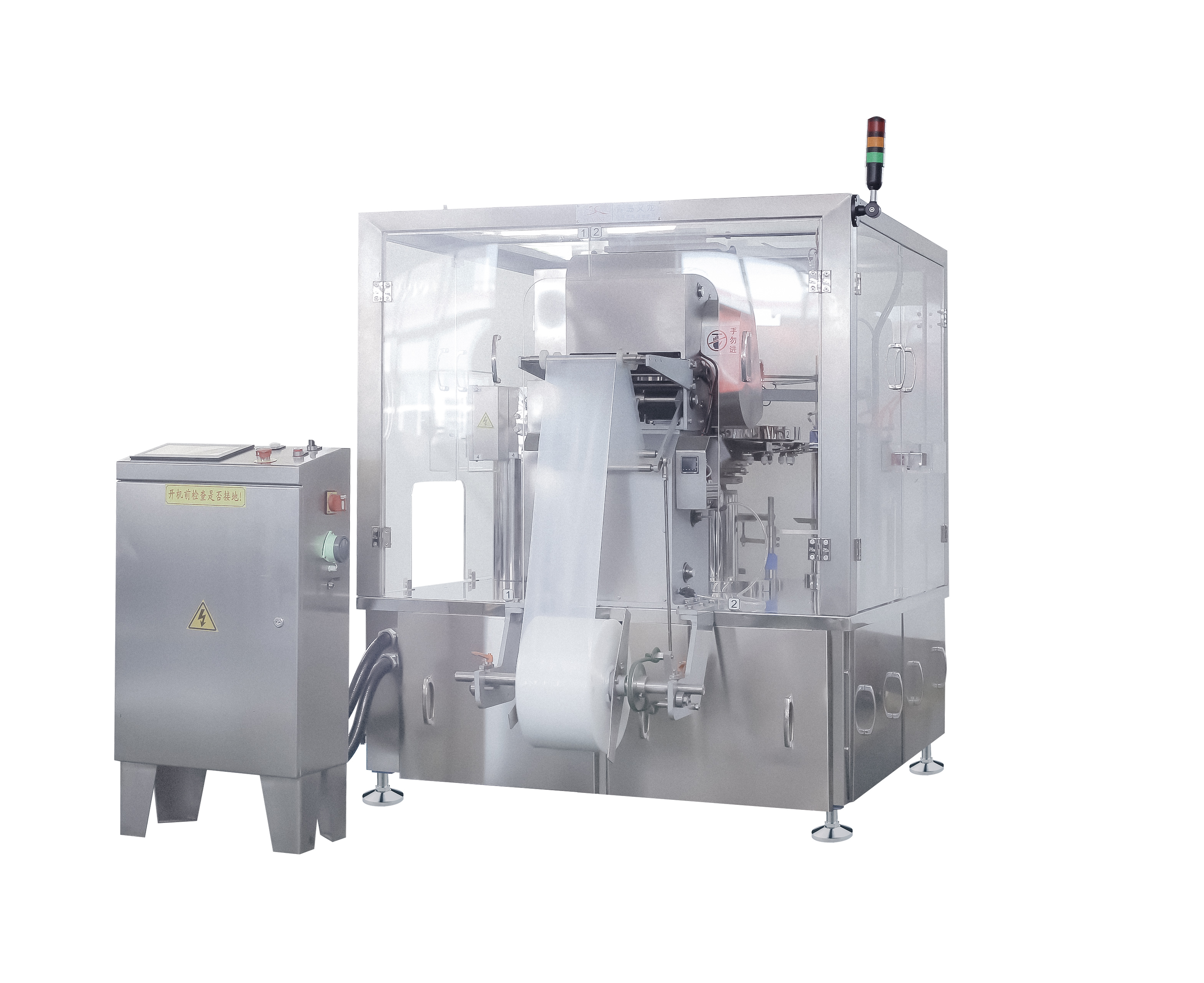 ●采用世界稳定的凸轮机械传动技术,使设备运行更加快速稳定;故障率、耗能低、耐用耐磨性强。 ●机械维护、检修方便:设备主要部分采用机械传动,多数采用含油轴承,减少了注油的部位,维护简单。 ●安装方便、操作简单。采用PLC触摸屏操作界面,全过程都实现自动化控制。主机调速采用变频调速器调速。 ●本机特别设计了整形工位,使封口平整无折皱,故包装袋图案完整、封口质量好、破包率极低,可降低包装袋损耗。