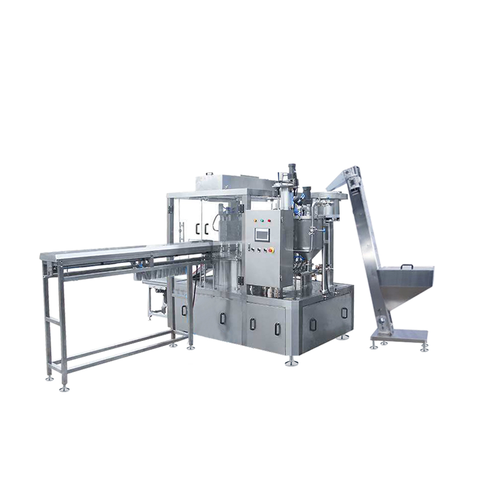 YL-(6-8)XZ间歇回转式吸嘴袋灌装旋盖机灌装头数6-8,针对各种吸嘴袋进行包装,机体采用先进喷塑工艺或采用全不锈钢材料,与物料接触部件选用进口不锈钢材料或其他洁净材料,卫生标准高、抗腐蚀、设备使用寿命长。可与自动计量机、各种提升机等设备配套,客户可依据产品包装需求增设开门急停、自动投卡、异常排出等细节功能,包装全过程无需人工操作,有效的为贵公司提高了生产效率,节约了人工费用及管理费用,大幅降低了成本。